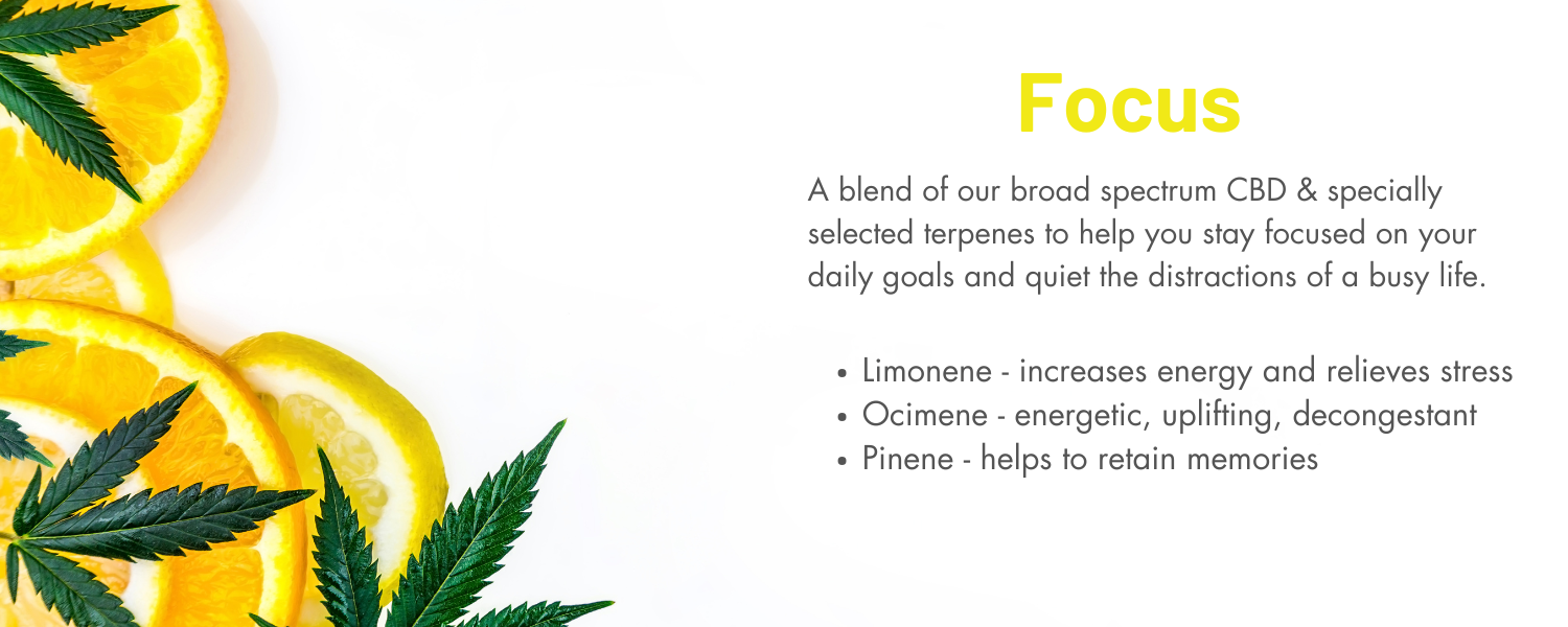 Each effect has been carefully formulated by combining our organically grown whole-plant hemp extract with specific botanical terpene blends to develop your desired mood. Read on to find out more about each Effect.
